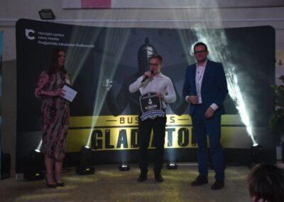Na večernem dogodku so podelili tri nagrade. Komisijo v sestavi Aleš Čadež, vlagatelj sklada Silicon Gardens, ustanovitelj in direktor podjetja Kaldi, Nina Dremelj, predsednica kluba Poslovni angeli Slovenije, in Rok Primožič, soustanovitelj uspešnega dolenjskega startupa Bubble Labs, d. o. o., ki je nastal ravno pod okriljem programa Business Gladiator, je najbolj prepričala zgodba Kristjana Stoparja in Urbana Košaleta, ki sta torej osvojila tudi skupno zmago. Občinstvo pa je navdušila ideja Mateja Mohorčiča, Vida Urha in Jakoba Ruparja DEMVOL – gre za tehnološko rešitev za nadzor tovora. »Ta nagrada je še ena taka potrditev, ker včasih to potrebuješ, ko greš stopnico po stopnico, in to je ena taka zmagovita stopnica, tako da nam je to spodbuda za naprej. Ideja je pametna ploščica za premagovanje odvisnosti od telefona Humanodoro, poleg je še aplikacija, koncept je pa tak, da spodbuja, da čim manj uporabljamo telefon in vzpostavimo to zdravo navado,« je izpostavil Kristijan Stopar.