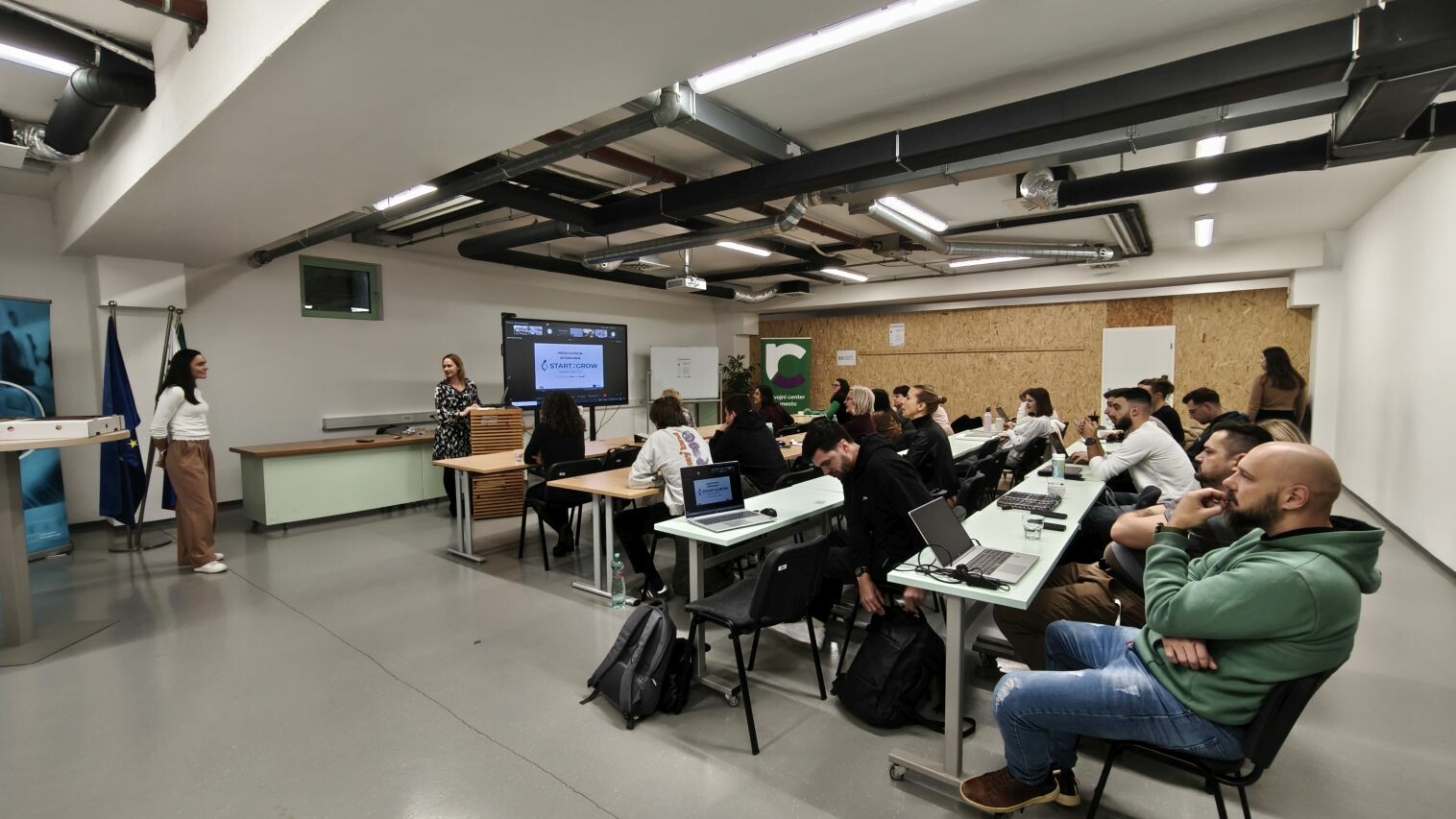Usposabljanje, namenjeno mladim od 18 do 29 let in ženskam podjetnicam, ki vodijo podjetje, mlajše od 48 mesecev, je sočasno potekalo v Novem mestu, Mariboru, Velenju in Vrtojbi.
