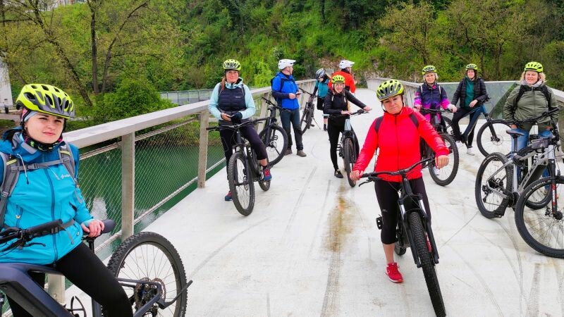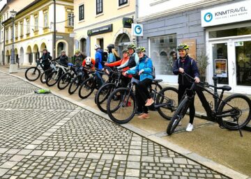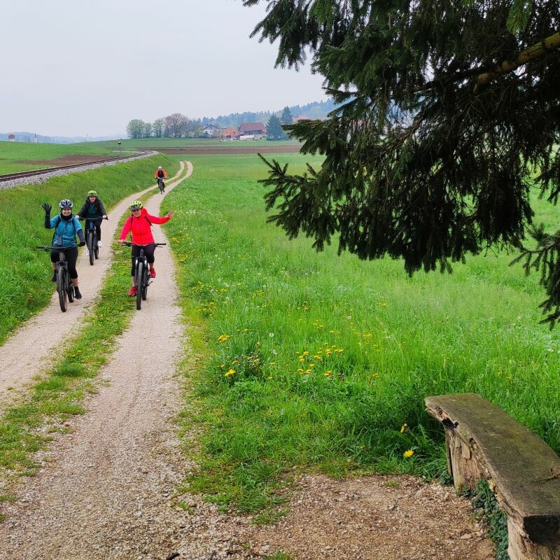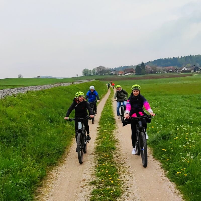 Pod vodstvom lokalnega kolesarskega vodnika Roka Popoviča je sledila prijetna kolesarska tura z električnimi kolesi do Dolenjskih Toplic.