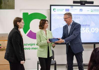 Zmagovalka finala tretjega znanstveno podjetniškega tekmovanja ScienceJam 2024, ki ga pripravlja informacijska točka EUROPE DIRECT Novo mesto, je ekipa Gimnazije Vič. V finalu včerajšnjega tekmovanja, ki je potekalo v prostorih Razvojnega centra Novo mesto, se je pomerilo devet srednješolskih ekip iz vse Slovenije, njihove predstavitve in raziskovalne naloge pa je ocenjevala štiričlanska strokovna komisija.