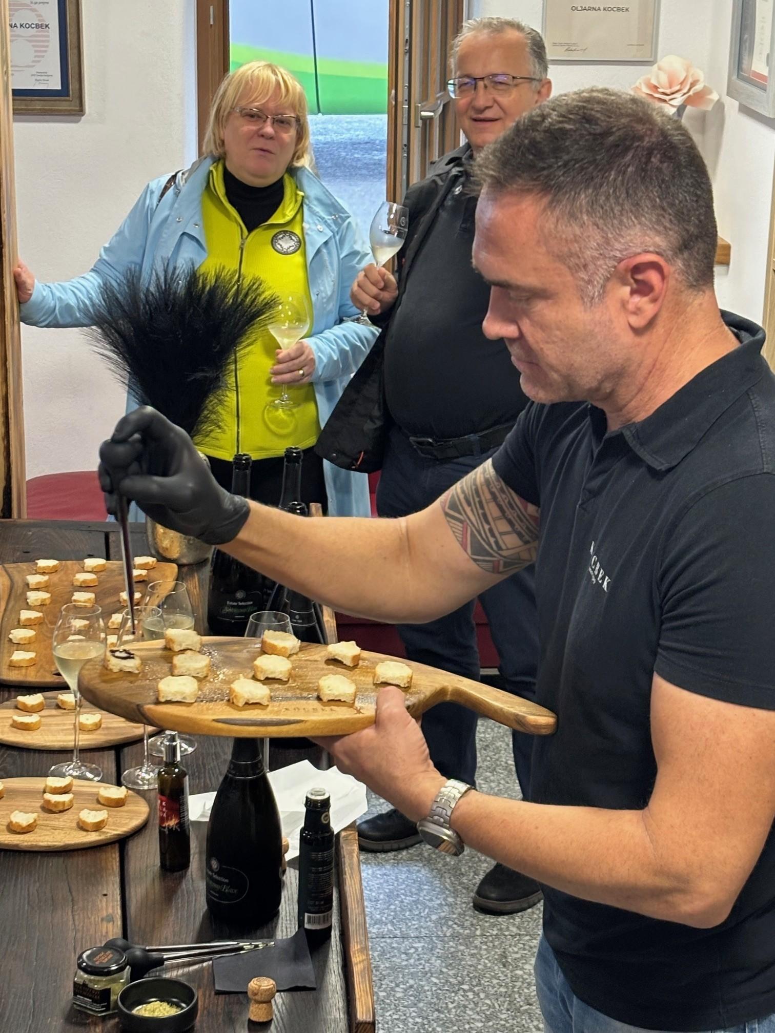 Da imamo tudi na slovenski strani kaj pokazati, smo se lahko naslednji dan prepričali v »Oljarni Kocbek«, družinskem podjetju s tradicijo pridelave bučnega olja, z zelo značilnimi izdelki, pristopi in zgodbo. Glavni produkt je bučno olje, proizvedeno s pomočjo toplotnega in hladnega stiskanja. Stavijo na visoko raven izdelkov, ki se ne ponaša le z visokokakovostnim oljem, ampak tudi z ročno izdelano in inovativno embalažo, primerno za vrhunske restavracije in gurmane. Pomembna je tudi njihova vpetost v lokalno okolje, saj oblikujejo široko mrežo ponudnikov, s katerimi skupaj razvijajo nove izdelke (čokolada, čips, namazi, mila …). Svojevrstno doživetje predstavlja tudi odlično izpeljana degustacija njihovih olj in izdelkov.